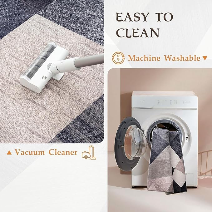 - 【Machine Washable Rugs】HOMFINE modern bedroom rug is machine washable, making it a more thorough and effortless way to remove stains and dust, which not only removes stains, dust, and odors more thoroughly but also saves you time and effort. Daily care is a breeze too, simply use a hoover. The HOMFINE washable area rug offers convenience and affordability for your busy lifestyle