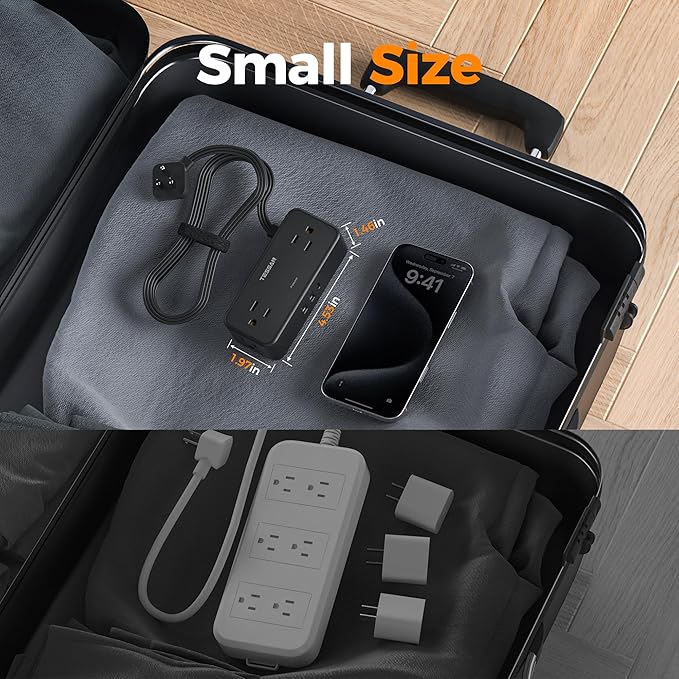 - 900J Surge Protector Outlet: Power strip with surge protection is equipped with short-circuit protection, overload protection, over-current protection and surge protection; This flat outlet extension cord can protect your electrical appliances from surges and spikes
