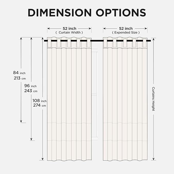 - 【Packaging Specifications】Each package contains 96 inch curtains 2 panels. Single panel measures 52"W x 96"L | Pair measures 104"W x 96"L.