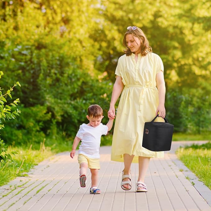 - PORTABLE WITH DETACHABLE BUCKLE: The detachable buckle design of the reusable baby bottle bag ensures you two portable carry ways, handhold or hanging on a stroller, together with soft nylon handle, let you carry the bottle bag effortlessly and comfortably.