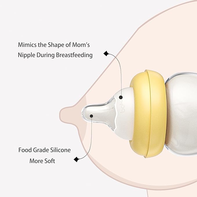 - Glass natural baby bottles with natural response nipples can control the speed of milk according to the baby suction, just like the natural sensation of breastfeeding.