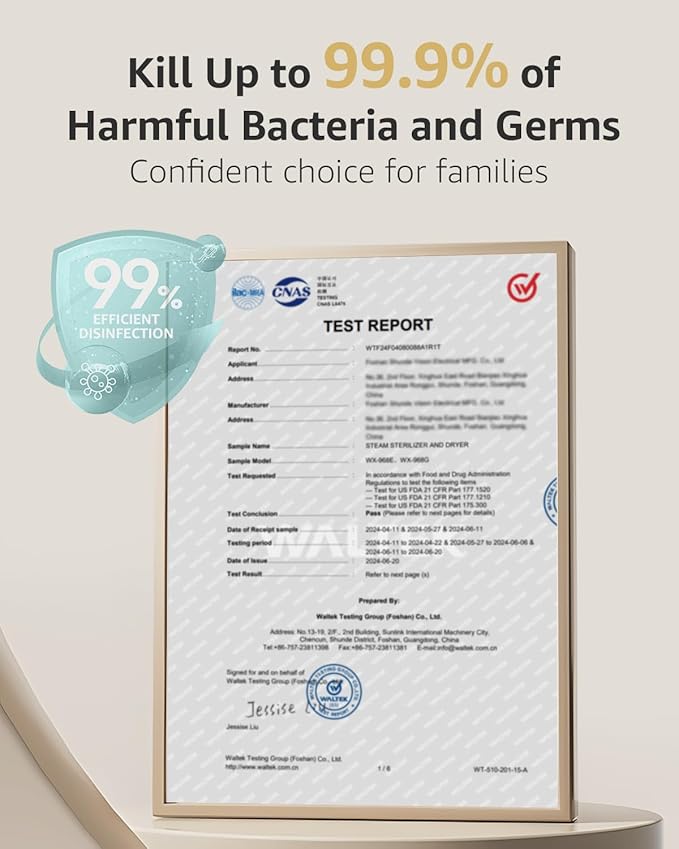 - 99.99% +Sterilized: Ensure 99.99% quick disinfection of baby bottles and baby necessities with natural steam.