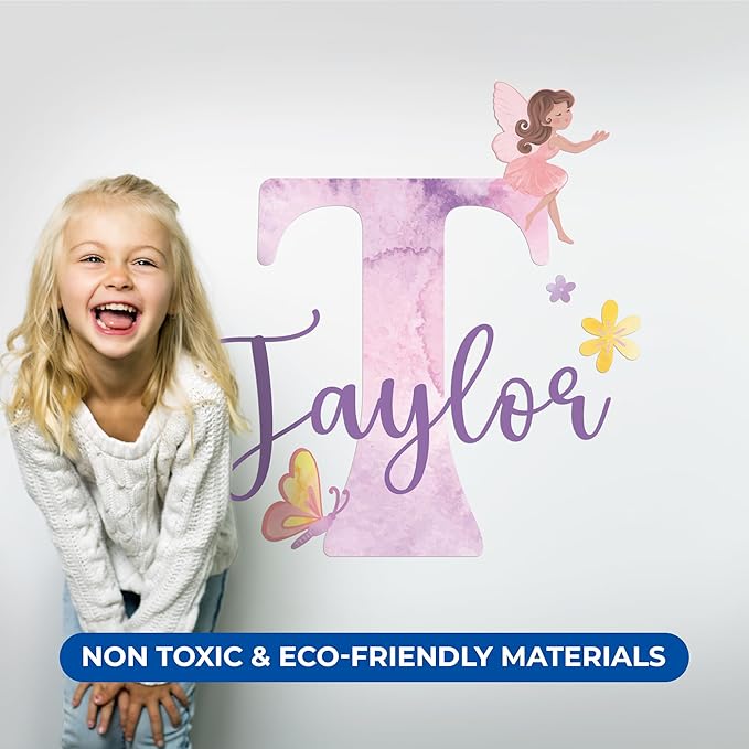 CRYPTONITE Custom Stickers Name & Initial for Fairy Decor I Fairy Pink Room Decor for Girl Bedroom Decor I Personalized Fairy Wall Decals for Little Girl Room Decor I Multiple Size Options (D. Fairy)