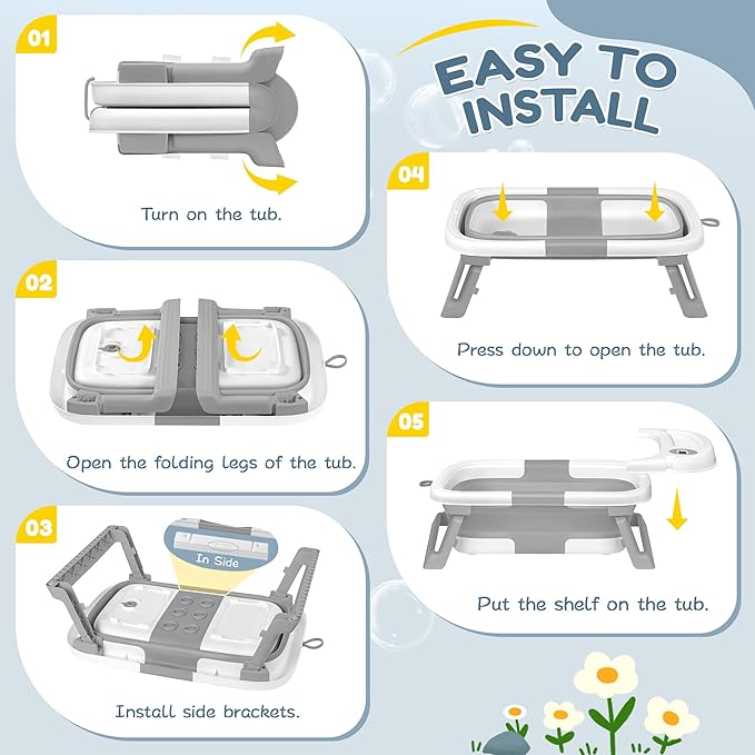- COLLAPSIBLE & SPACE-SAVING DESIGN: This baby bathtub easily folds into a compact square, with a thickness of less than 4 inches. Perfect for storage in the bathroom or car trunk, making it an ideal companion for home and travel.