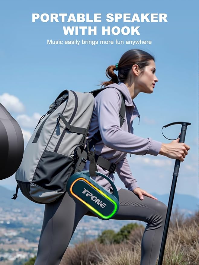 - 【Everything You Need】The package includes 1 Portable Bluetooth speaker, 1 Hook, 1 AUX Cable, 1 Type-C charging cable, and a quick start guide, all backed by lifetime technical support.