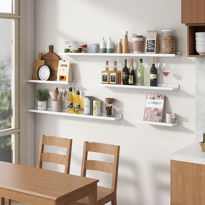 • 【Versatile and Multi-Functional】These shelves aren’t just for photos! FLYJOE ledge shelves can be creatively used as kids' bookshelves, display shelves for collectibles, spice racks in the kitchen, or even over-the-toilet storage in the bathroom. Their adaptability makes them a practical choice for any room in your home
