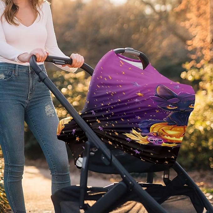 Binienty Black Cat Car Seat Covers for Babies Galaxy Pumpkin Cats Moon Nursing Covers Stretchy Breastfeeding Scarf Multi Use Carseat Covers for Stroller