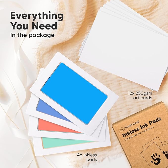 - 12 x 250GSM Art Cards - Your little one is perfect; so are their hand and footprint. Use the additional art cards to stamp multiple hand, foot or paw print. Choose the best artwork for your desired displays. Refer to our step-by-step instruction manual on how you can achieve the best results.