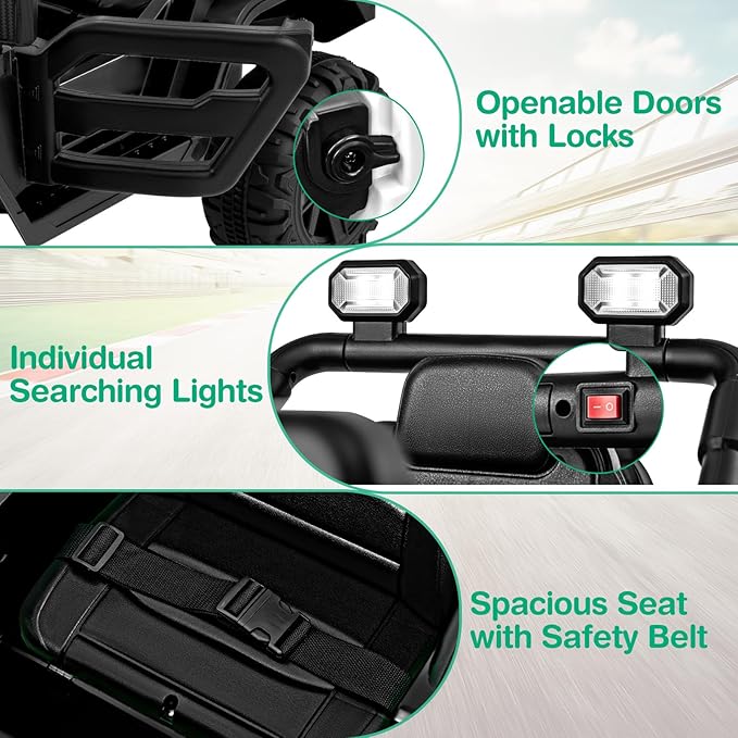 - 【Safe & Reliable Construction】 Constructed from BPA-free material, the electric ride on truck is equipped with adjustable safety belt, lockable doors to ensure durability and safety. It complies with ASTM and CPSIA standards, serving as a reliable and perfect gift for boys and girls over 3 years old.