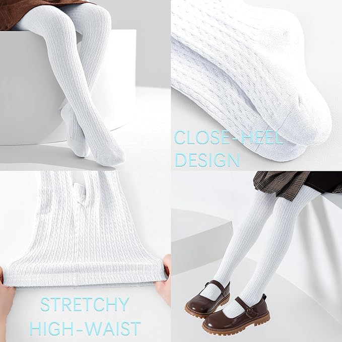 • SOFT MATERIAL: Toddler tights are made of 78% Cotton Blend, 19% Polyester, 3% Spandex, which is soft and skin-friendly. The moderate thickness enables this cotton girls tights to be worn in spring, fall and winter