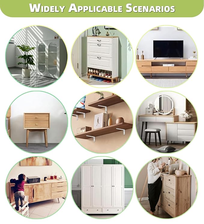 Furniture Anchors, Anti Tip Furniture Wall Anchor for Baby Proofing, Prevent Falling Furniture (Fixed 4 Items II)