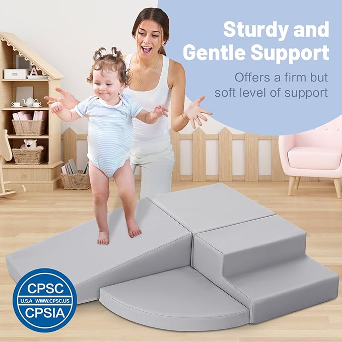 4-Piece PU Leather Baby Foam Climbing Blocks for Toddlers - Soft Play Climbing Toys for Toddlers - Foam Climbing Set for Crawling and Sliding Indoor (Gray)