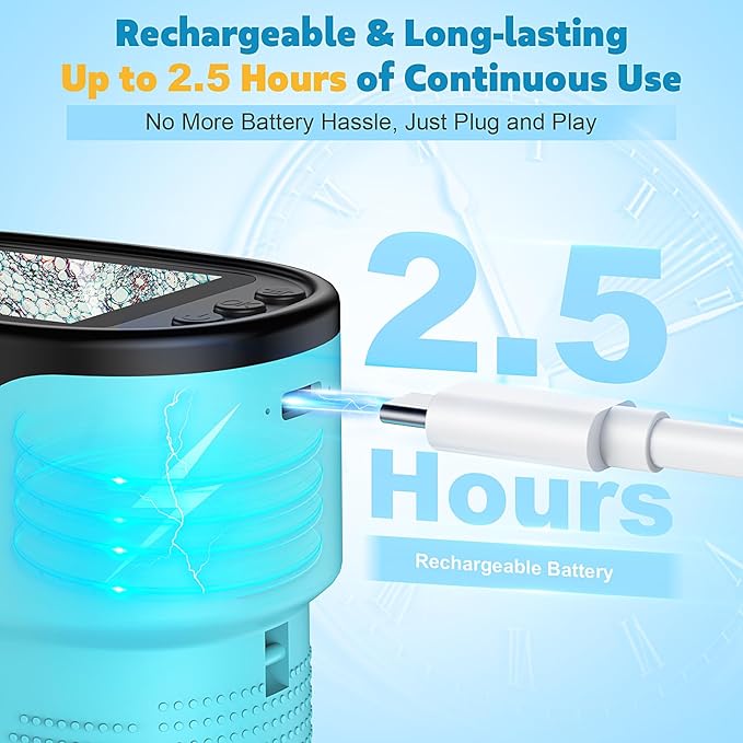 - Rechargeable and Long-Lasting: Equipped with a rechargeable battery, this handheld microscope for kids ensures hours of continuous exploration. It’s a great portable microscope for extended outdoor or indoor study sessions.