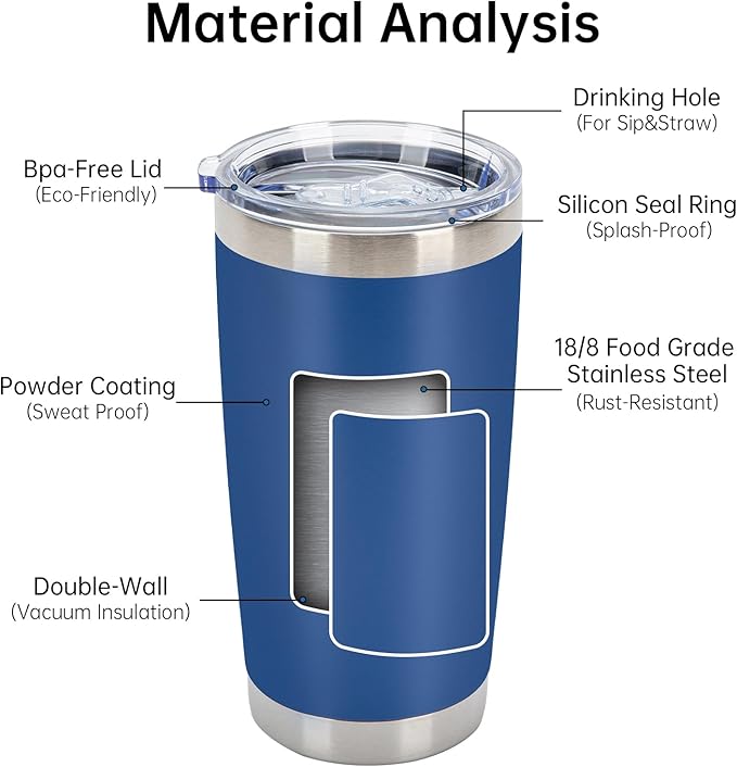 - 【Temperature Retention】: The 20oz Bulk Tumbler uses dual wall vacuum insulation structure to keep drinks cold for 12 hours or hot for 8 hours, The sweat free design of its outer wall always keeps it dry on your desk top, holding your longlasting cold bevarage like iced water, juice, smootie, fizzy drink and more.