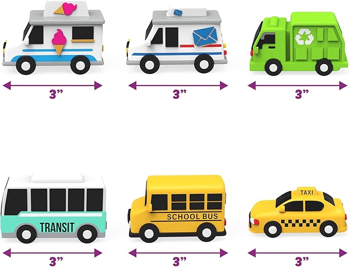 - CITY VEHICLES 6 PACK: Set includes (6) exclusive Mold Free Bath Toys featuring fun car bath toys - Mail Truck, School Bus, Ice Cream Truck, Taxi, City Bus & Garbage Truck - must-have toddler car toys!