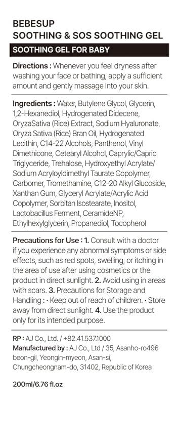 BEBESUP- 베베숲 Instant - Cooling Relief Baby Soothing Gel | Korean Skincare for Sensitive & Atopic Skin 3-Sec Cooling Effect Clinically Tested Hypoallergenic Dermatologist Approved 6.76 fl oz
