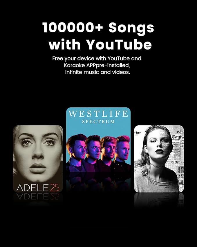 - Ultimate All-in-One Karaoke Experience: Designed for true karaoke enthusiasts, Ikarao’s karaoke machine features a built-in touchscreen and seamless Wi-Fi connectivity, enabling direct access to YouTube, KaraFun (Apps for Singing. Thousands of Karaoke Songs) and other streaming platforms. Dive into your favorite tracks without needing extra devices, making setup quick and convenient