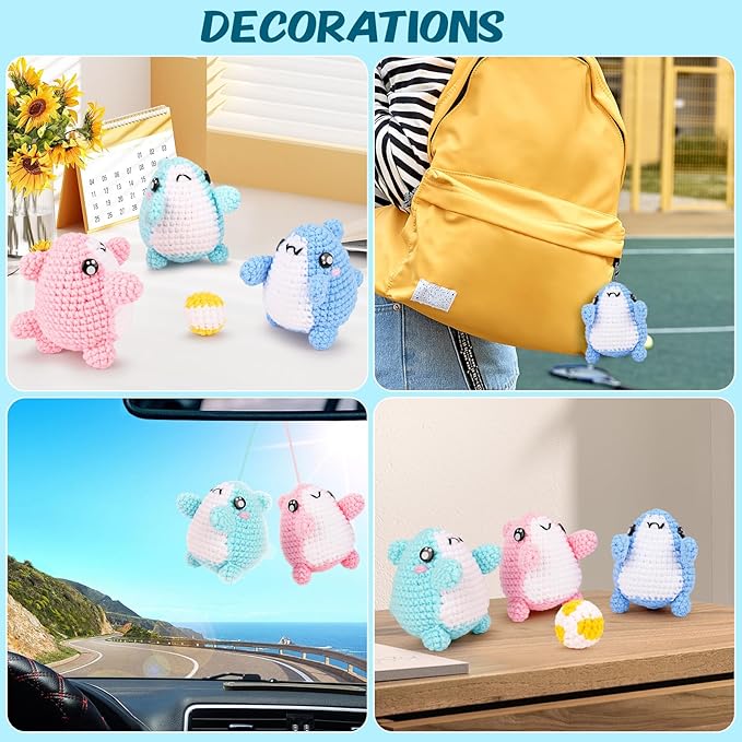 - CROCHET ANIMAL KIT: The crochet starter kit could crochet 3 cute sharks and a small ball. It is designed for animal lovers and is loved by many. It will gently heal your heart as you crochet. The warm finished product can be used as a decoration and placed in the study room, living room, bedroom lamp, etc