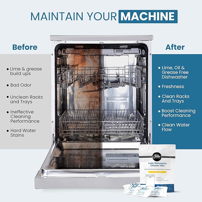 - ELIMINATES LIMESCALE & GREASE: Fuller Dishwasher Cleaner Tabs effectively remove lime scale, grease, and mineral build-up, keeping your dishwasher running at peak performance.