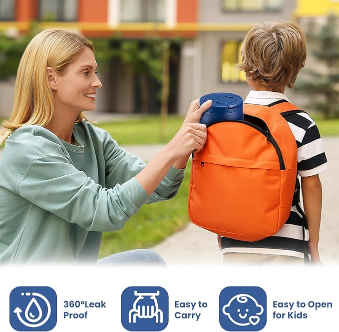 - 100% Leak Proof Design: our food thermos comes with a thick silicone gasket. You can put it into your lunch bag without worrying about spillage. The insulated thermal food jar comes with a stainless steel spoon, convenient for your child to use during lunch.