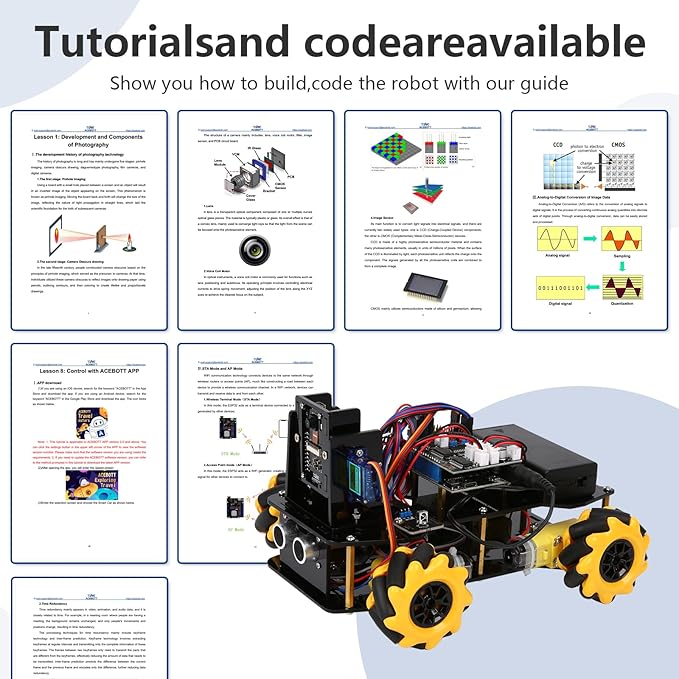 - Simple assembly and detailed coding tutorial: This smart robot expansion package contains HD rendering instructions on how to assemble a robot car from scratch and all necessary programs and codes. The path is: ACEBOTT official website - Resources - WIKI and assembly video.