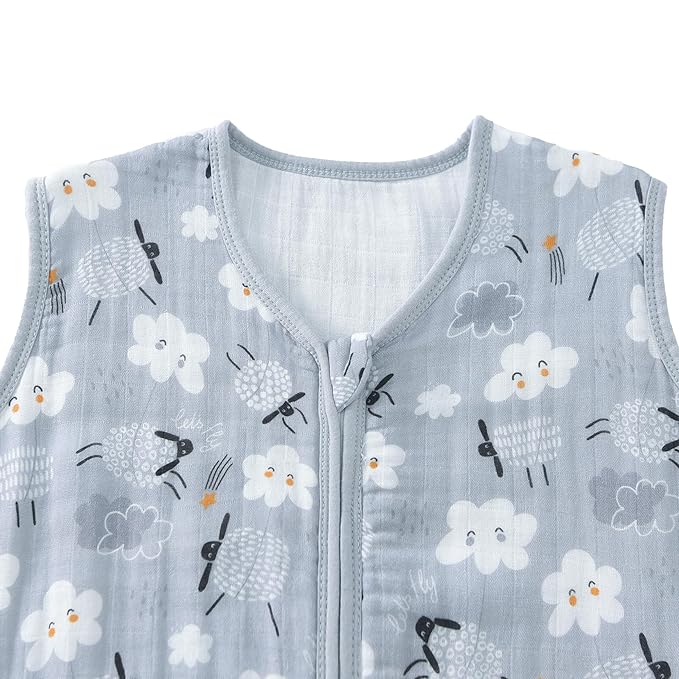 - Safe and Simple Design: The double-way zipper(YKK) design facilitates easy dressing and diaper changes, and the safety tab safeguards your baby's delicate chin. The roomy sack design provides greater mobility for better sleep, and the sleeveless design helps prevent overheating
