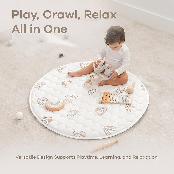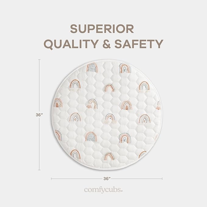 Comfy Cubs Round Kids Play Mat -Small 36 inches Soft Quilted Baby Floor Mat with Non-Slip Bottom - Plush Design for Toddlers' Playtime and Relaxation - Comfortable and Durable - Rainbow