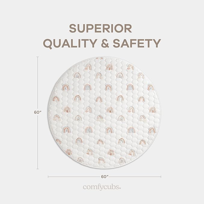 Comfy Cubs Round Kids Play Mat - Large 60 inches Soft Quilted Baby Floor Mat with Non-Slip Bottom - Plush Design for Toddlers' Playtime and Relaxation - Comfortable and Durable - Rainbow