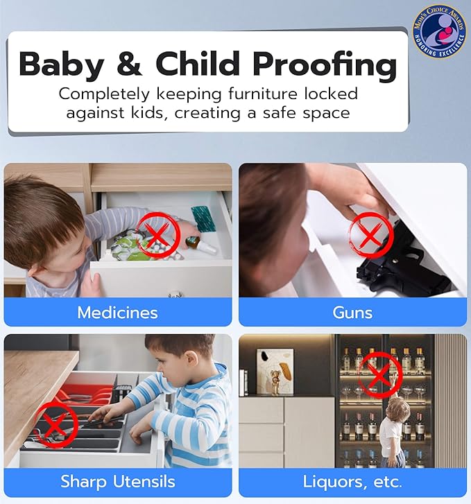 - 🔒【High Security】: Made of sturdy zinc alloy and ABS, the lock can handle at least 440 lbs of pull tension with screw installation, and the invisible installation design has high-security features such as anti-prying, anti-vandalism, child safety, and baby proofing.
