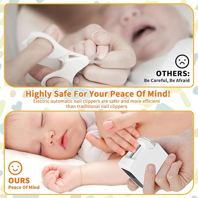 - Low Noise & LED Light: Have you been struggling with your baby's reluctance to trim their nails? Then you need a baby nail clipper that can easily trim your sleeping baby's nails at night without waking him up. Our nail trimmer for baby are equipped with LED auxiliary lights and operate with low noise. Trimming your baby's nails is no longer a hassle!