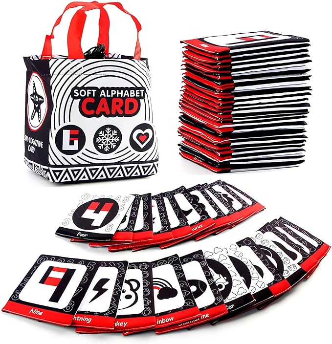 - πΆπ€π’γ 26 Pieces ABC Letter and Number Cards γ Believing that babyβs safety is more important than anything, our alphabet flash cards are made of soft polyester. These alphabet flash cards are washable and tear-resistant, sturdy and neat stitching can withstand countless washing