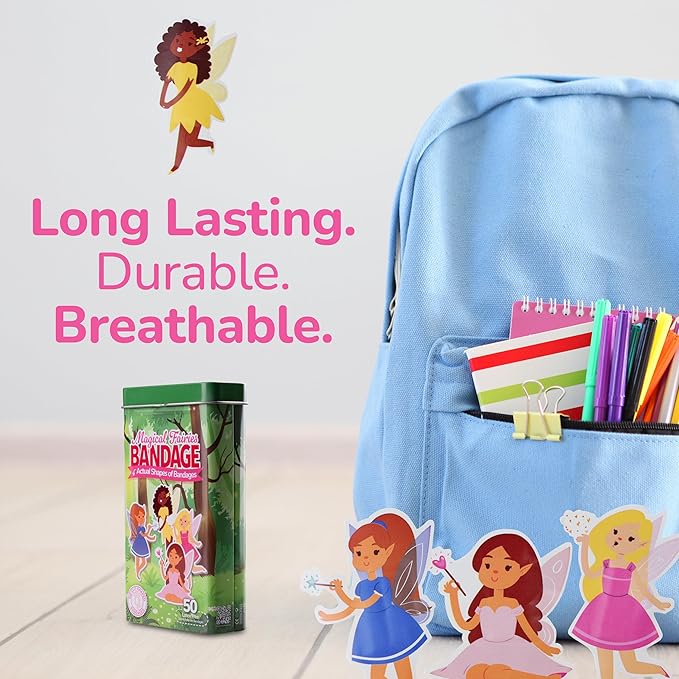 - EASY TO CARRY AND USE: These cute and colorful Magical Fairies children's bandages are easy to take with you for travel, and easy to store in a home first aid kit; these healing bandages are perfect for school, summer camp, camping trips, weekend getaways and more