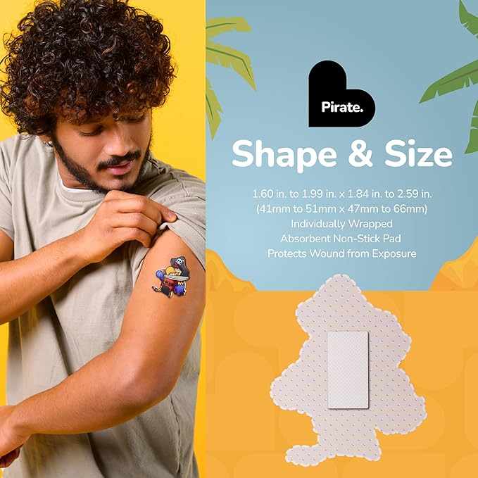 - SAFE PACKAGING: These sterile Pirates bandages come in cute and adorable packaging, and are individually wrapped for safe handling; small bandages help protect kids' sensitive wounds from coming into contact with dirt for first aid wound care