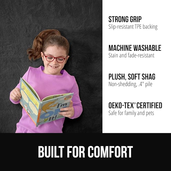 GORILLA GRIP Ultra Soft Washable Area Rug, 6x9, Stain and Slip Resistant Plush Thick Carpet for Bedroom Living Room, No Shed Floor Rugs Pet Friendly, Dorm Essentials, Kids Nursery Home Decor Dark Gray