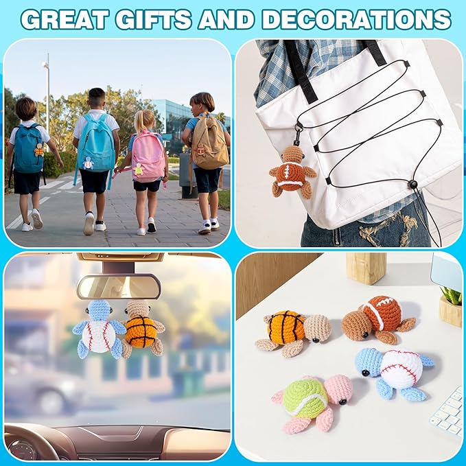 Crochet Kit for Beginners -4 PCS Turtle Crochet Kit with Step-by-Step Video Tutorials, Beginner Crochet Kits for Adults, Animal Crochet Turtle Ball Games Set