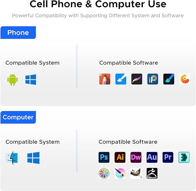 - Graphic Drawing Tablet Wide Compatibility: This ienRon IES1060 drawing tablet is compatible with Windows XP, 7, 8, 10, 11 and later versions, Android 5.0 and above; Mac OS 10.7.0 and later versions. Not for iPhone/iPad/Chromebook. This drawing pad works seamlessly with most major creative drawing software such as Photoshop, SAI, FlipaClip, Medibang, Adobe Illustrator, Lightroom, and supports Microsoft Office. It is also suitable for left-handed users