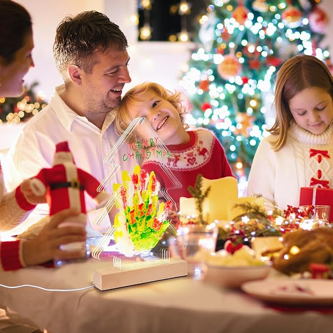 - WARM CHRISTMAS TREE HANDPRINT NIGHT LIGHT – It’s a special warm christmas tree night light after printing your families handprints with writing best wishs.,you have 3 light colors to choose “warm light” “warm white light” “white light” with 5 brightness adjustments to meet your different needs.