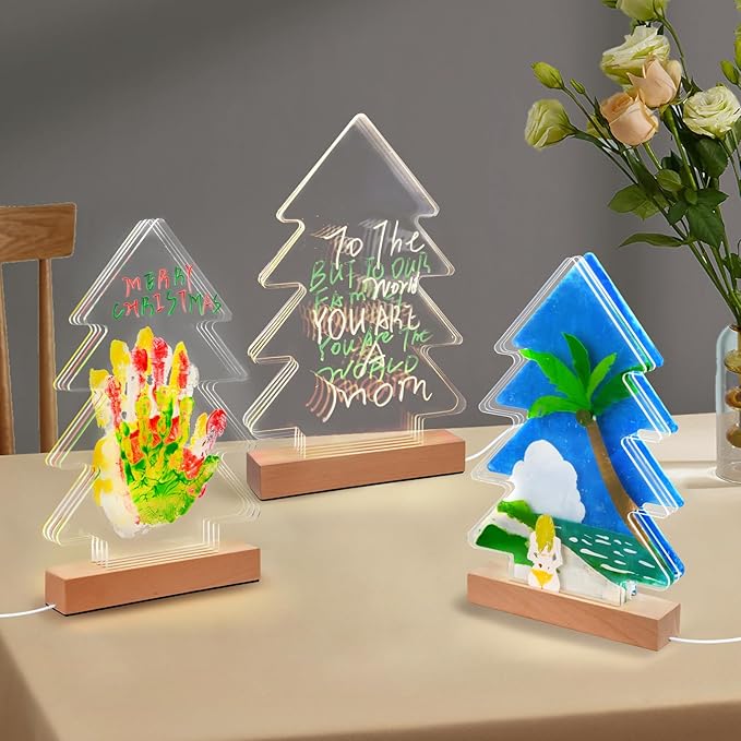 - A HANDPRINT KIT,LED NOTE BOARD,SOLID PAINTING,FINGER PAINTING – we can do more fun project with 12pcs colored paints and 12pcs colored markers,you can print your families handprints to keep the cherished memory.you can write your list or your notes on acrylic sheets.you can draw different parts of one picture on different acrylic sheets,it will be a solid picture after insert all acrylic in the wooden base.you can apply some paints on your finger than print your fingerprint on acrylic sheets,you can draw a picture to use your fingerprints.