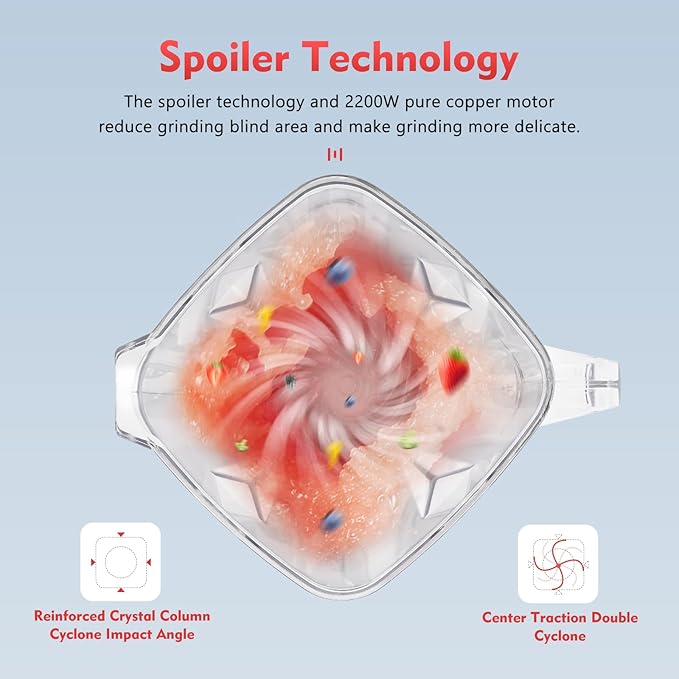 - 【Fine&Thorough Grinding】The spoiler technology, reinforced crystal column cyclone impact angle, center traction double cyclone and 2200W pure copper motor reduce grinding blind area and make grinding more delicate