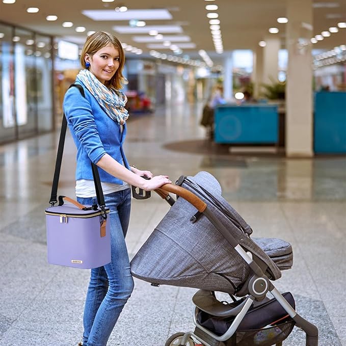 - More Practical: Breastmilk cooler bag have detachable buckle top handle that you can put it in the stroller easily. Come with an adjustable shoulder straps ( 28 - 57 inches) makes the baby cooler bag easier to carry. Except for storing breastmilk, baby cooler bag can as a lunch bag to store refrigerate fruits, lunch or other foods