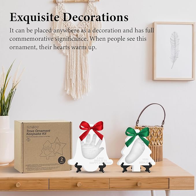 - Record Your Baby's Growth:Create Meaningful memories Don't let newborn exhaustion erase those precious memories.This baby souvenir clay ornament captures their perfect little handprint, footprints, fingers and toes. It's a must for newborns!
