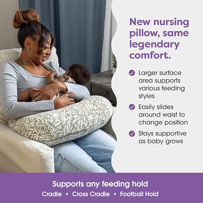Boppy Nursing Pillow - Ergonomic Bottle & Breastfeeding Pillow, Higher, Firmer & Larger, Water-Repellent with Washable Organic Cotton Cover, Baby Safety Alliance Verified - Green Cut Out Leaves
