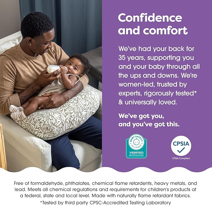 - 35 Years of Confidence: Better connecting babies and moms since 1989 with breastfeeding pillows, baby carriers and other baby essentials so you can worry less and enjoy more; The first brand certified by the JPMA in the Nursing Pillow category for meeting the highest standards in safety, performance and quality; Meets and exceeds standards for ASTM F3669 Consumer Safety Specification for Nursing Pillows and 16 CFR 1242 safety standard for nursing pillows, so you can have peace of mind