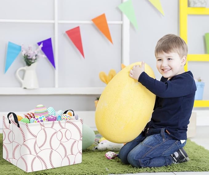 HIYAGON Rectangular Baseball Basket Kids Baby Nursery Storage Basket for Boys Baseball Room Decor Cute Toy Storage Organizer Bins Bedroom(Baseballs)