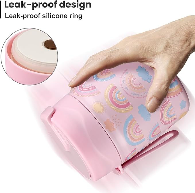 - Leak-Proof Design: Featuring an upgraded double-layer silicone seal that provides a 360° leak-proof guarantee. Rest assured that our leak-proof thermo food jar can fit in your lunch bag without worrying about spills. The insulated thermal food jar comes with a stainless steel spoon for your child's convenience.