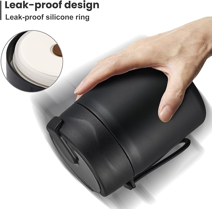 - Leak-Proof Design: Featuring an upgraded double-layer silicone seal that provides a 360° leak-proof guarantee. Rest assured that our leak-proof thermo food jar can fit in your lunch bag without worrying about spills. The insulated thermal food jar comes with a stainless steel spoon for your child's convenience.