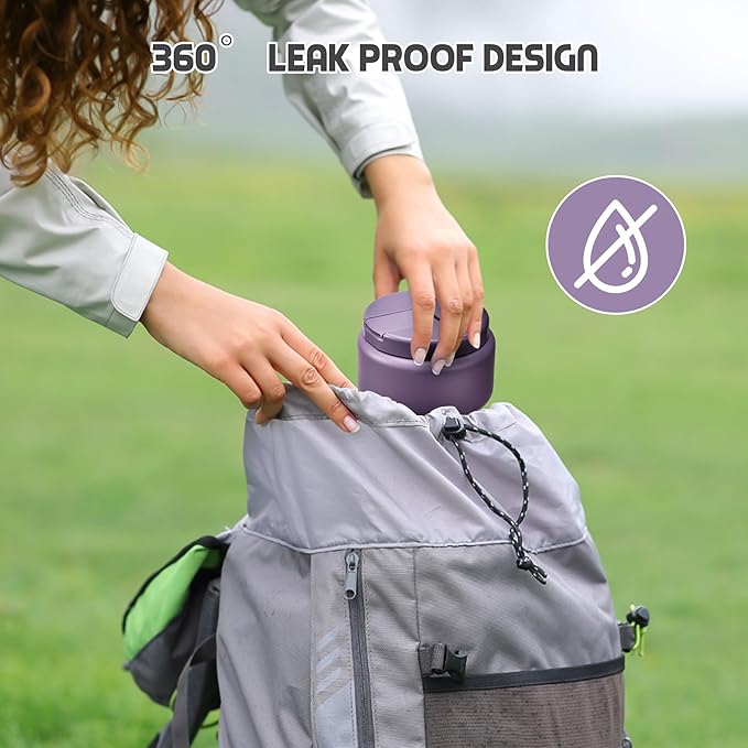 - 100% Leak Proof :Our food thermo comes with a thick silicone gasket. It is full sealed. So you can toss it in your bag or insulation bag without worrying about spills. Wide mouth design are also very easy to clean.