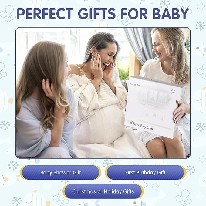 - [Ideal Baby Item]: Designed to encourage curiosity, sensory development, and hand-eye coordination, this baby activity gym is perfect for babies aged 0-18 months. It makes a thoughtful gift for baby showers, first birthdays, and bonding moments.