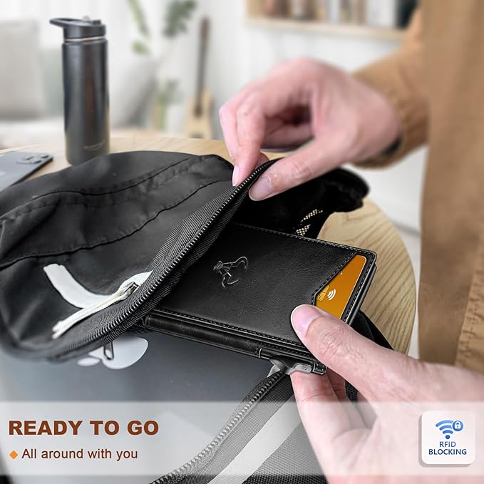 - CAPACITY-Pop-up metal Case in flipping leather shell,9 card slots (including 1 ID window) and metal money clip for couple of bills;