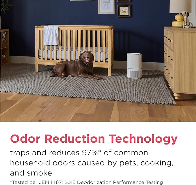 - Quiet Operation & Odor Reduction: Operating quietly at just 20 dBA* to maintain a peaceful home environment, this purifier traps and reduces 97%** of common household odors from pets, cooking, and smoke